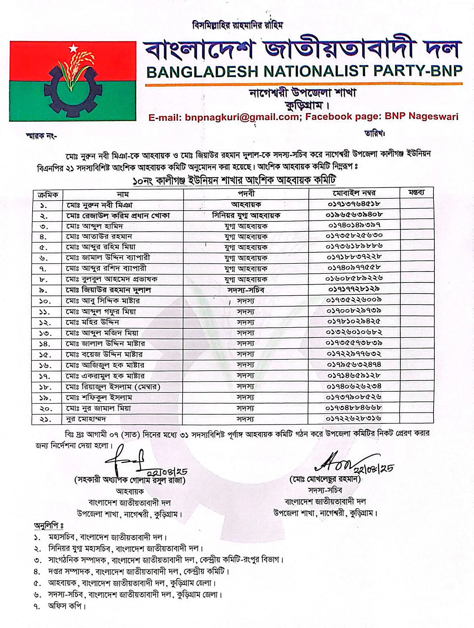 যেহেতু কমিটি নাগেশ্বরী উপজেলা বিএনপি করেছে, তবে কোনো অভিযোগ থাকলে আমাদের কাছে জানাতে পারে আমরা তা সঠিকভাবে তদন্ত করে প্রয়োজনীয় ব্যবস্থা গ্রহণ করব।