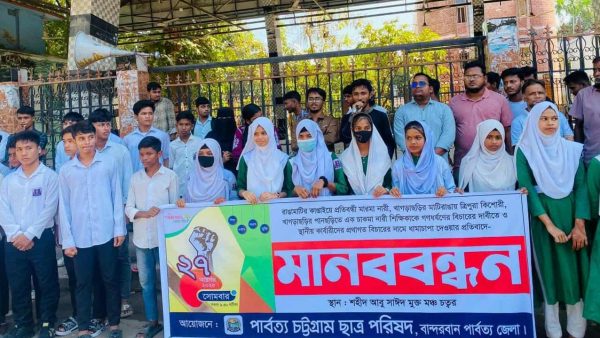 টাকার বিনিময়ে বিচার নয়, অপরাধীর দৃষ্টান্তমূলক শাস্তি চাই: মানববন্ধনে বক্তারা