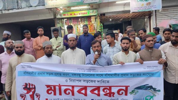 বাঁশখালীতে নিরাপদ সড়কের দাবিতে ছাত্রসেনার মানববন্ধন।