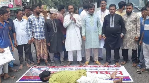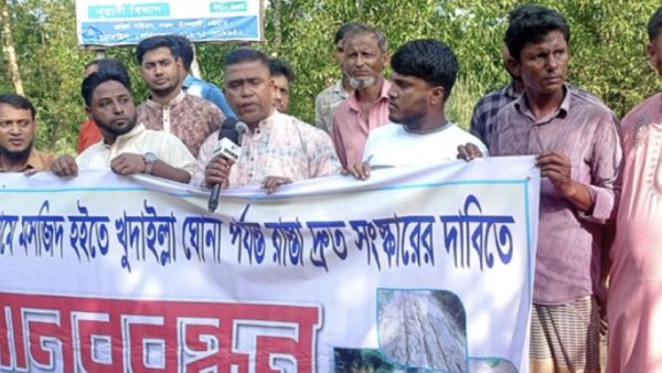 সড়ক সংস্কারের দাবিতে বাঁশখালীতে মানববন্ধন