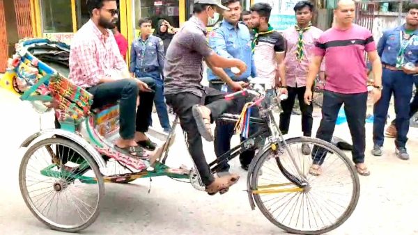 সুনামগঞ্জের সড়কে চলাচলকারী রিক্সা চালক ও হতদরিদ্রদের মধ্যে খাবার পানি ও স্যালাইন বিতরণ