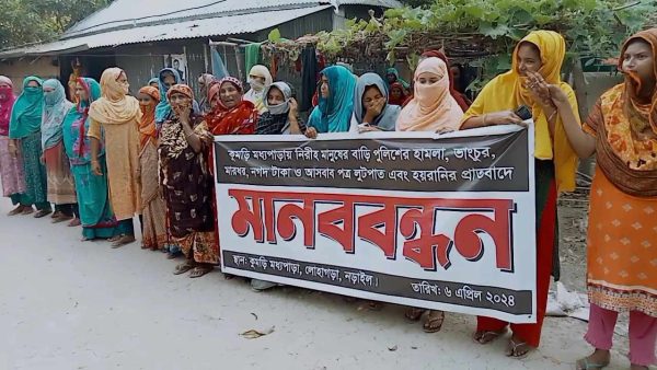 লোহাগড়ায় পুলিশের তান্ডব প্রতিবাদে এলাকাবাসীর বিক্ষোভ ও মানববন্ধন