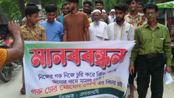 কালীগঞ্জে গরু চোরের বিরুদ্ধে মানববন্ধন