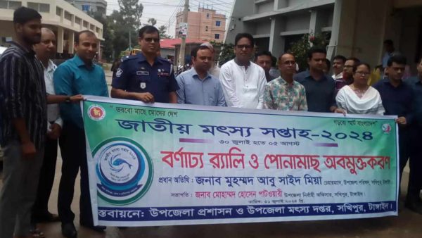 সখিপুরে জাতীয় মৎস্য সপ্তাহ উপলক্ষে বর্ণাঢ্য র্যালী ও মাছের পোনা অবমুক্ত করণ