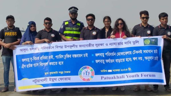 জলবায়ু সুবিচার ও ন্যায্যতার দাবিতে কুয়াকাটায় তরুণদের অবস্থান