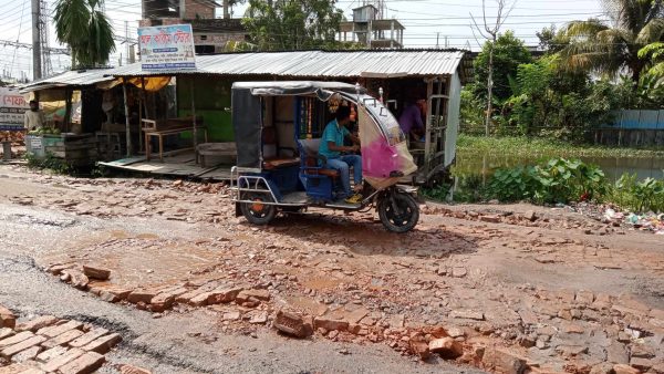 পটুয়াখালীর বড় চৌরাস্তা থেকে নন্দখানাই পর্যন্ত রাস্তার বেহাল দশা।