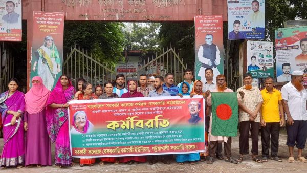 পটুয়াখালী সরকারি কলেজে মানববন্ধন ও কর্মবিরতি