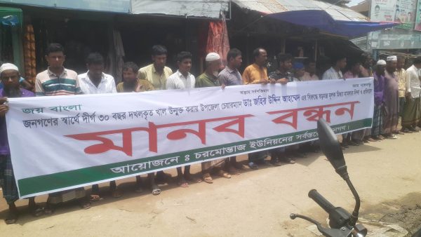রাঙ্গাবালীতে উপজেলা চেয়ারম্যান এর বিরুদ্ধে মামলার প্রতিবাদে মানববন্ধন৷