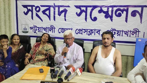 স্কুল ছাত্র জয়ন্তকে হত্যা করার অভিযোগে পটুয়াখালীতে সংবাদ সম্মেলন করেন তার পরিবার।