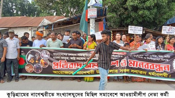 নাগেশ্বরীতে সংখ্যালঘুদের মিছিল সমাবেশে আওয়ামীলীগ নেতা কর্মী
