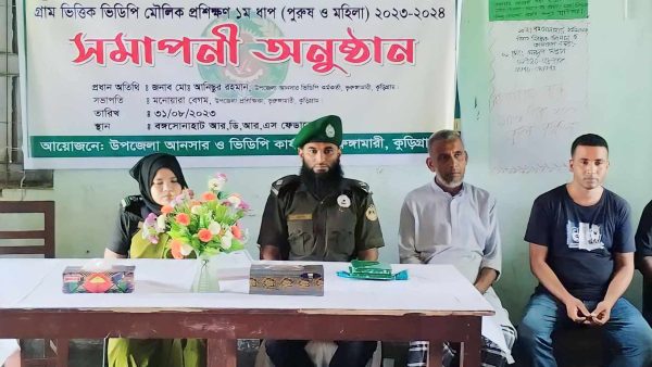 ভুরুঙ্গামারীতে ১০ দিন মেয়াদী ভিডিপি মৌলিক প্রশিক্ষণের সমাপনী অনুষ্ঠিত।