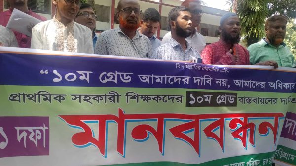 রাজীপুরে এক দফা দাবীতে প্রাথমিক শিক্ষকদের মানববন্ধন