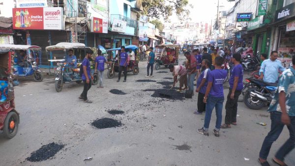 রাস্তা সংস্কারে নেমেছে স্বেচ্ছাসেবী সংগঠন একতাবন্ধন