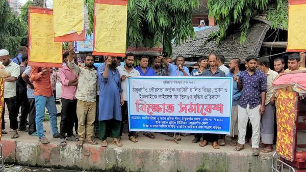 ঠাকুরগাঁওয়ে রিক্সা,ভ্যান ও ইজিবাইক শ্রমিকদের বিক্ষোভ সমাবেশ