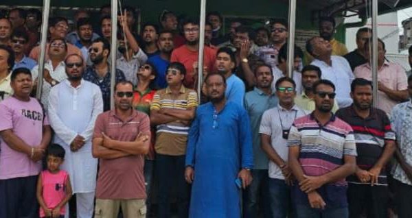 ভোলায় ওসি ও এসআইর বিরুদ্ধে ঘুষ বানিজ্যের অভিযোগ : প্রত্যাহারের দাবিতে মানববন্ধন।