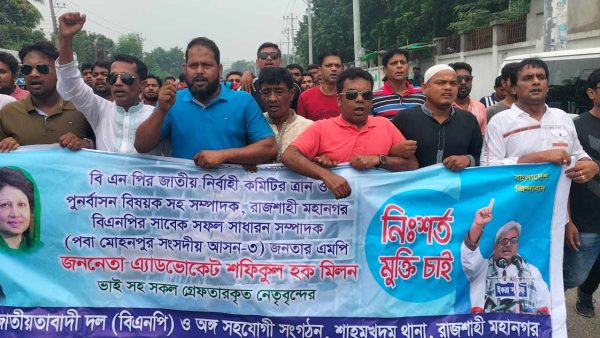 রাজশাহী’র বিএনপি নেতা মিলনের জামিন না মঞ্জুর, প্রতিবাদ মিছিল