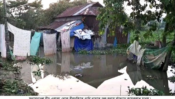 সুনামগঞ্জে সুরমা নদীর পানির বিপদ সীমার ৩৯ সেন্টিমিটার নীচ দিয়ে প্রবাহিত হচ্ছে,দুর্ভোগে নীচু এলাকার পানিবন্দী ৯ লাখ মানুষ