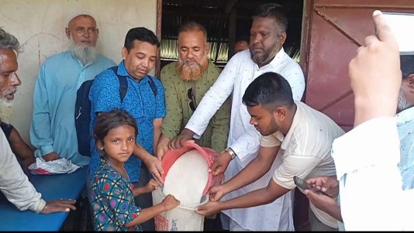তাহিরপুরে বানবাসী মানুষের মধ্যে চাউল বিতরণ