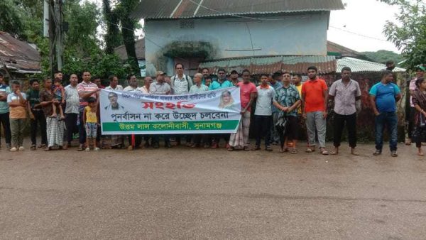 মিরনজিল্লায় হরিজন সম্প্রদায়কে পুনর্বাসন ছাড়া উচ্ছেদ অভিযানের প্রতিবাদে সুনামগঞ্জে মানববন্ধন