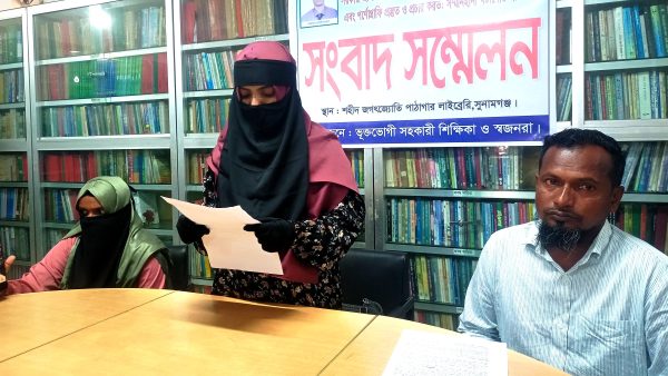 সুনামগঞ্জে আমেরিকা প্রবাসী নজরুল কর্তৃক শিক্ষিকার সম্মানহানীর প্রতিবাদে সংবাদ সম্মেলন