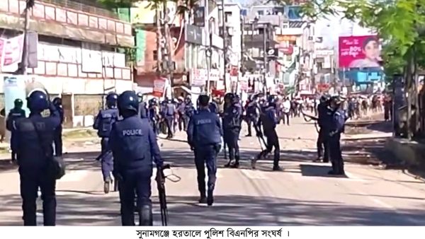 সুনামগঞ্জে বিএনপি জামায়াতের হরতালের সমর্থনে মিছিলে পুলিশ বিএনপি জামায়াতের সংঘর্ষে রণক্ষেত্র শহর,আটক ৪