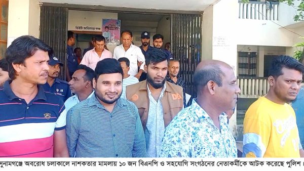 সুনামগঞ্জে নাশকতার মামলায় ১০ জন বিএনপির নেতাকর্মীকে আটক করেছে পুলিশ