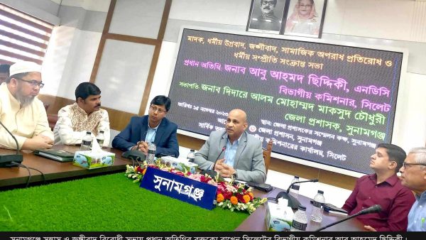 সুনামগঞ্জে সন্ত্রাস ও জঙ্গীবাদের বিরুদ্ধে সভা । সাংবিধানিক ধারাবহিকতা অব্যাহত রাখতে হবে সিলেট বিভাগীয় কমিশনার…..আবু আহমদ