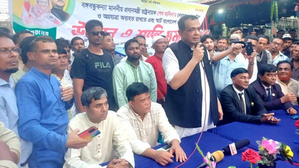 বিএনপি জামায়াতের নৈরাজ্যের প্রতিবাদে জগন্নাথপুরে আওয়ামীলীগের শান্তি সমাবেশে কেন্দ্রীয় নেতা আজিজুস সামাদ