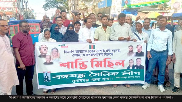 বিএনপি জামায়াতের দেশব্যাপী হরতাল ও অবরোধের প্রতিবাদে সুনামগঞ্জ বঙ্গবন্ধু সৈনিকলীগের শান্তি মিছিল ও পথসভা
