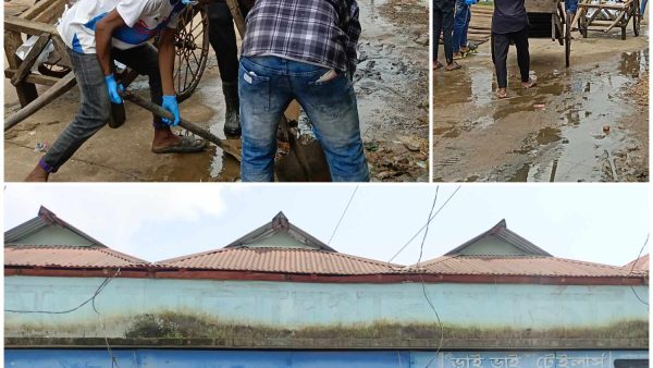 তাহিরপুরে পরিস্কার পরিচ্ছন্নতার কাজ করছেন শিক্ষার্থীরা।