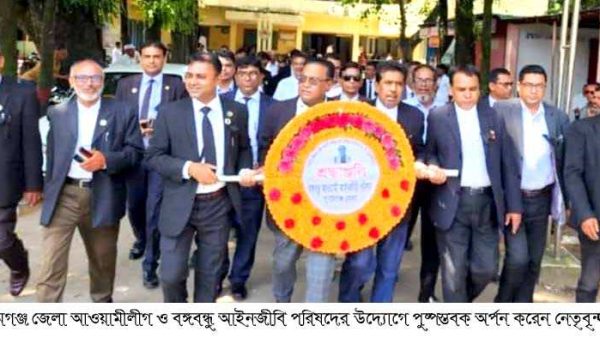 বঙ্গবন্ধুর প্রতিকৃতিতে সুনামগঞ্জ জেলা আওয়ামীলীগের উদ্যোগে পুষ্পস্তবক অর্পণ,মিলাদ মাহফিল অনুষ্ঠিত