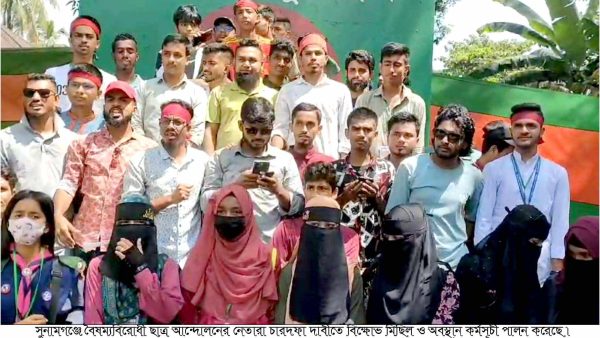 সুনামগঞ্জে বৈষম্য বিরোধী ছাত্র আন্দোলনের বিক্ষোভ মিছিল ও অবস্থান কর্মসূচী পালিত