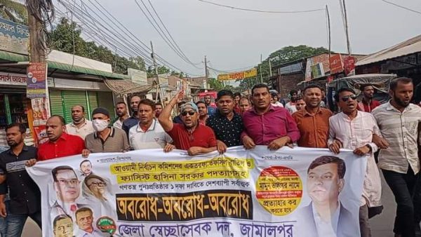 বাংলাদেশ জাতীয়তাবাদী স্বেচ্ছাসেবকদল এক দফা এক দাবিতে জামালপুরে অবরোধ করেছে