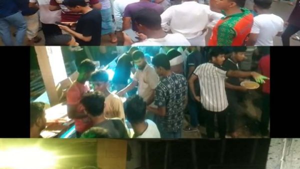শেখ হাসিনার বিদায়ের খবরে সাতঘাটিয়া পুকুর পাড় চত্বরে বিরিয়ানি বিতরণ।